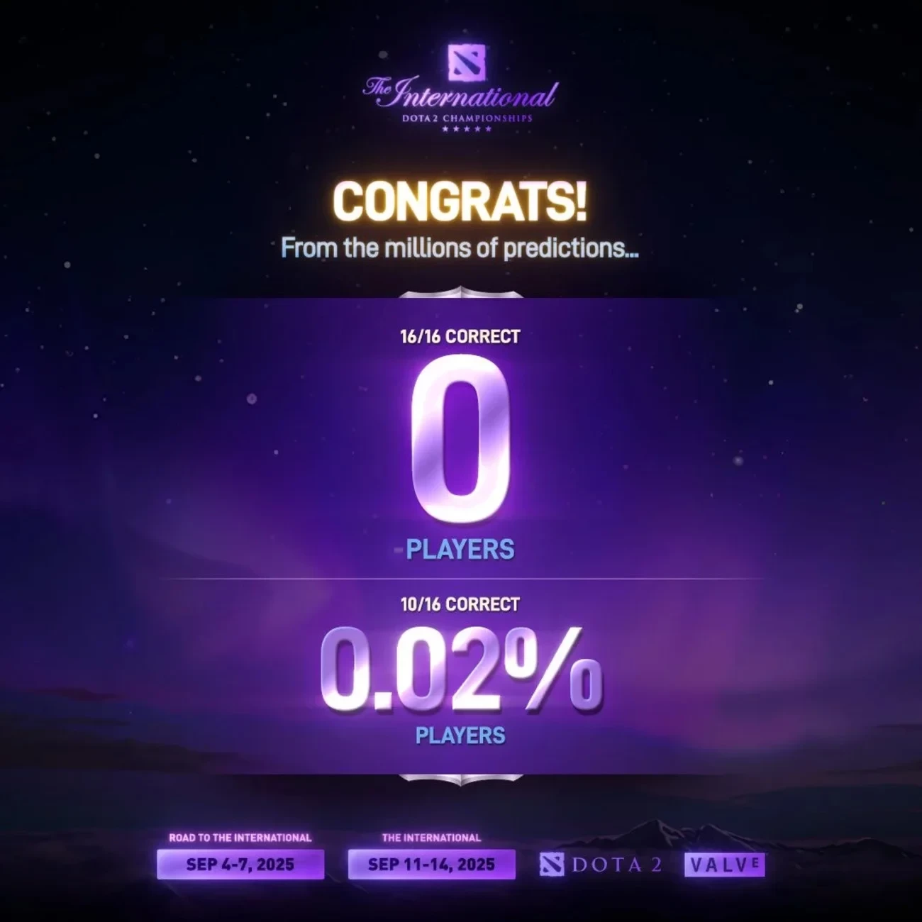 Самое интересное о кино на YouTube канале Игромании!Фото: ValveПо словам журналиста Wykrhm Reddy, в внутриигровом компендиуме не нашлось ни одного участника, который угадал бы все 16 исходов группового этапа The International 2025 по Dota 2.