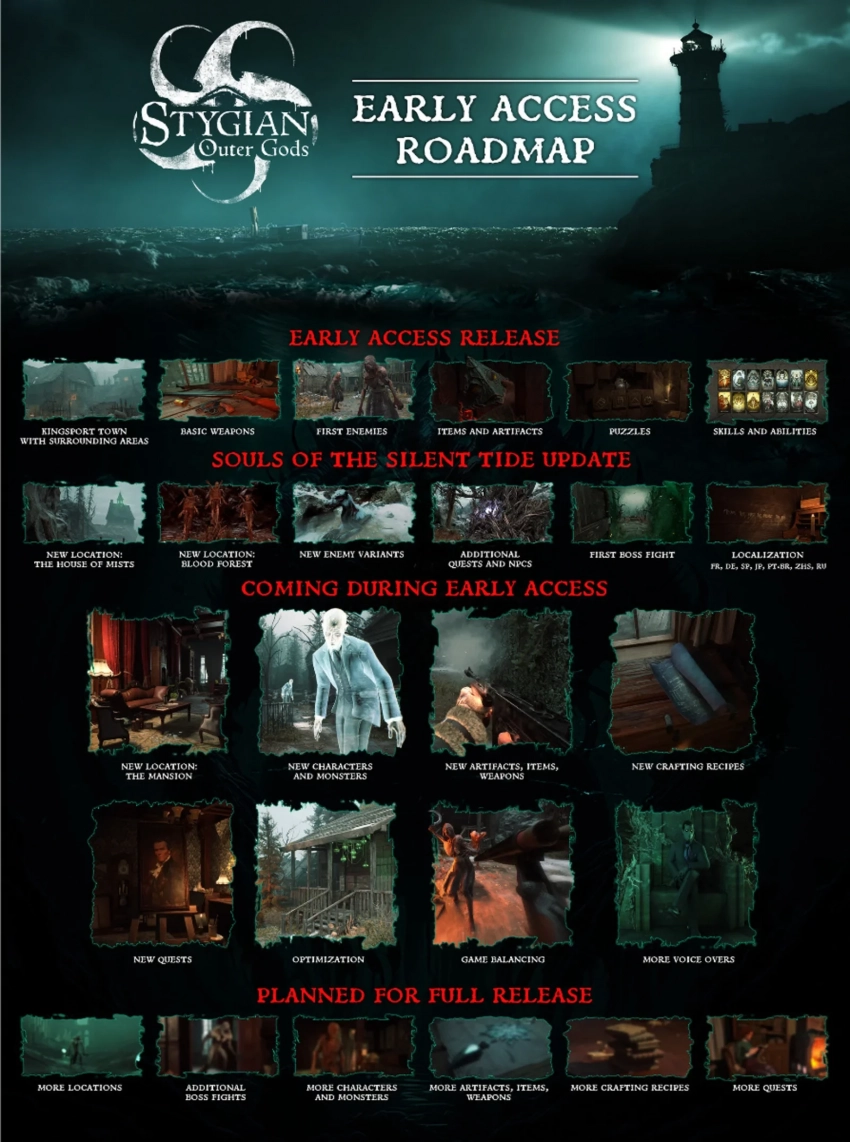 Создатели игры на этапе раннего доступа планируют добавить карту Mansion, новых героев и монстров, оружие и артефакты, а также квесты, рецепты для крафта. Кроме того, обещают заняться оптимизацией, балансом и дополнительными вариантами озвучки. Всё это ожидается уже осенью 2025.