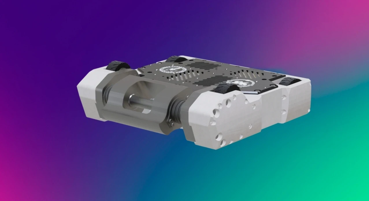 Каркас машины собран из металлических панелей с усилением в местах крепления ключевых узлов. Боковые части дополнены щитами, а фронтальная зона снабжена направляющими элементами для защиты при столкновениях. Такое решение помогает роботу сохранять баланс и контролировать движения даже при работе высокооборотистого механизма.