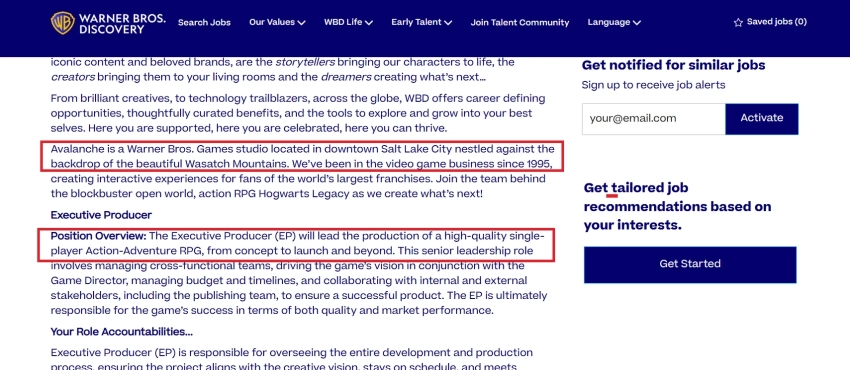 «Avalanche — студия Warner Bros. Games, расположенная в центре Солт-Лейк-Сити, […] Присоединяйтесь к команде, создавшей нашумевший ролевой экшен с открытым миром Hogwarts Legacy, в нашем новом проекте.