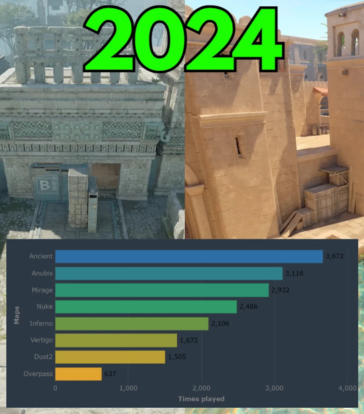 Главные новости » Эксклюзив » На Ancient в CS 2 сыграли более 3,5 тысяч профессиональных матчей — это топ-1 года