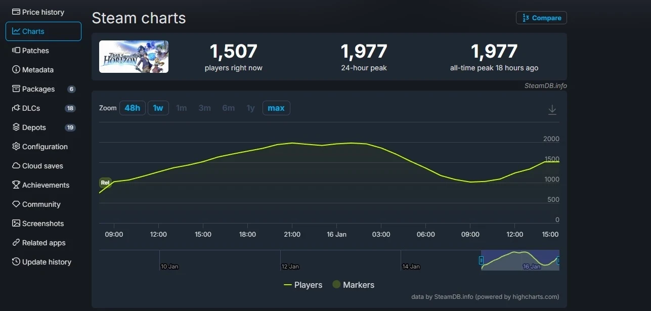 Обложка: кадр трейлера The Legend of Heroes: Trails beyond the HorizonЯпонский ролевой экшен The Legend of Heroes: Trails beyond the Horizon тепло приняли пользователи Steam. С момента выхода — 15 января 2026 года — его максимальный онлайн на платформе составил 1 977 игроков, а рейтинг — 95% положительных отзывов.
