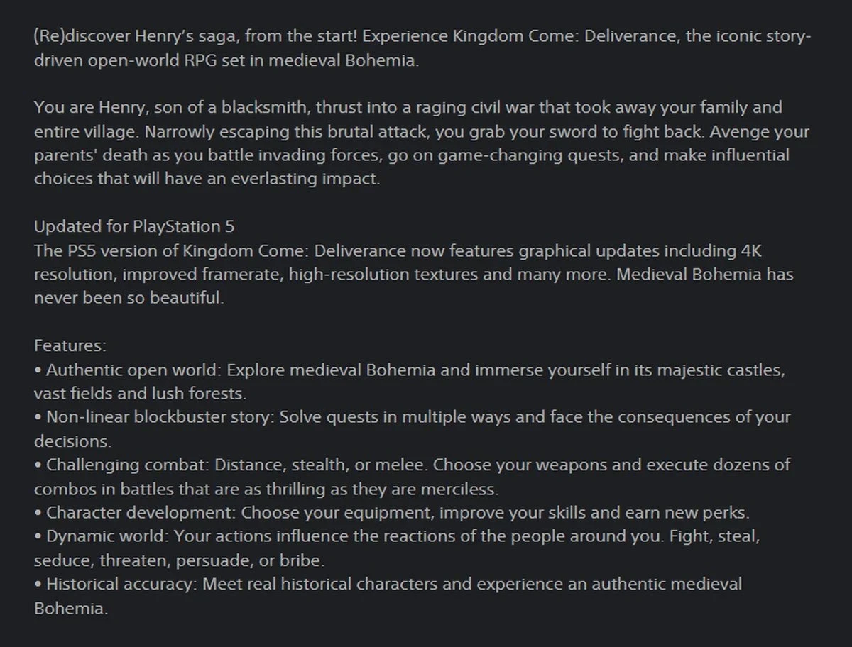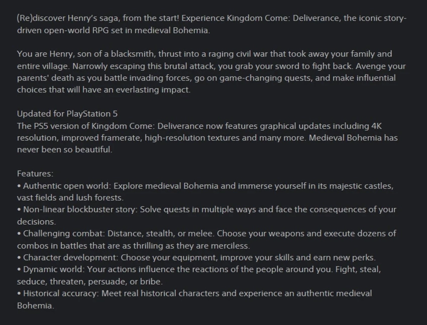 Главные новости » Эксклюзив » Упоминание Kingdom Come: Deliverance для PS5 обнаружили в PS Store