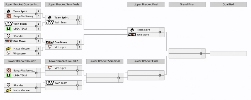 «Драконы» победили сначала команду BanyaPivoSamogon, а затем и 1win Team. OM одолела сначала 9Pandas, а потом Virtus.pro. В финале верхней сетки команды сыграют между собой.