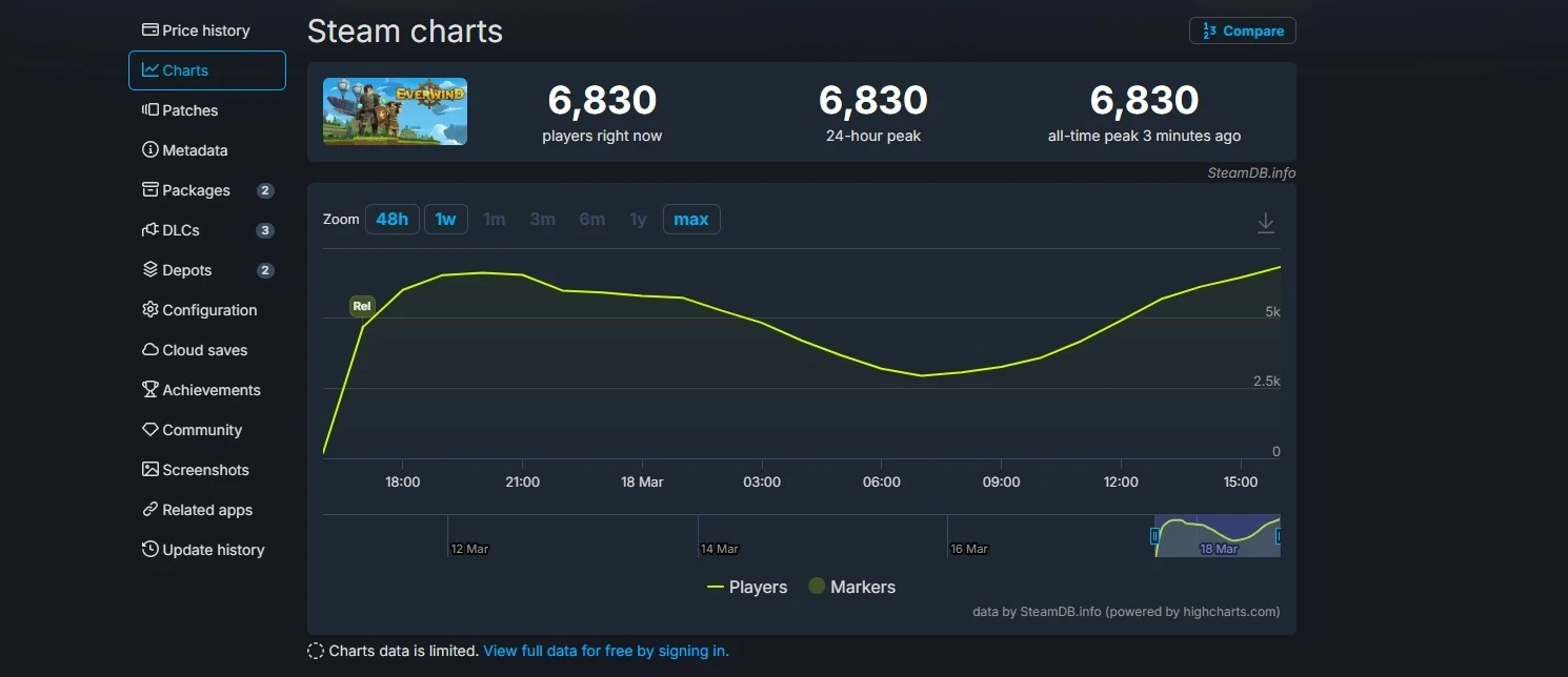 С момента запуска в игре собралось немало человека. Сейчас пиковый онлайн составляет 6 830 игроков.