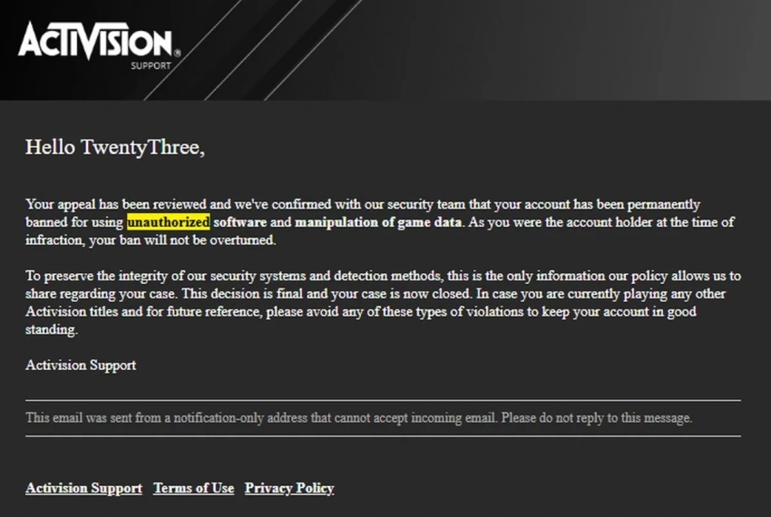 Activision отказалась предоставить доказательства «читерства» игрока Call of Duty, сославшись на соображения безопасности, хотя он просил лишь «безобидную» информацию вроде названия используемого программного обеспечения.