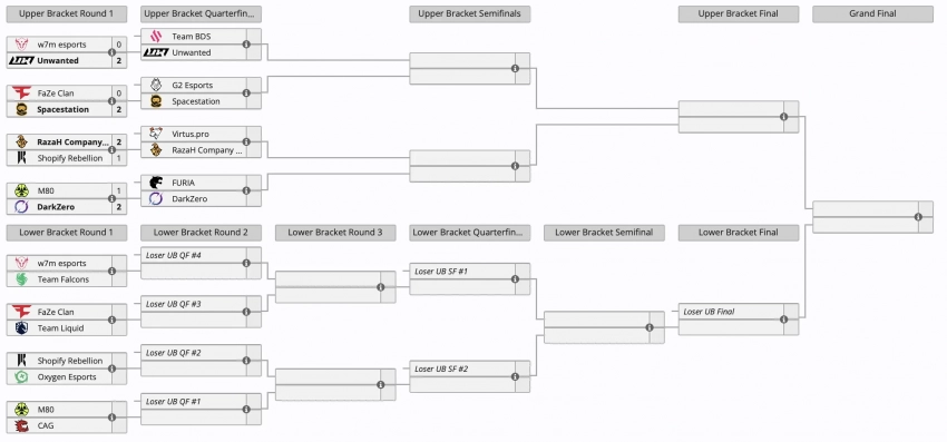 Что касается других матчей, то w7m esports уступила Unwanted, FaZe Clan проиграла Spacestation, а M80 была слабее DarkZero. Проигравшие команды опустились в нижнюю сетку, где продолжат бороться за выживание.