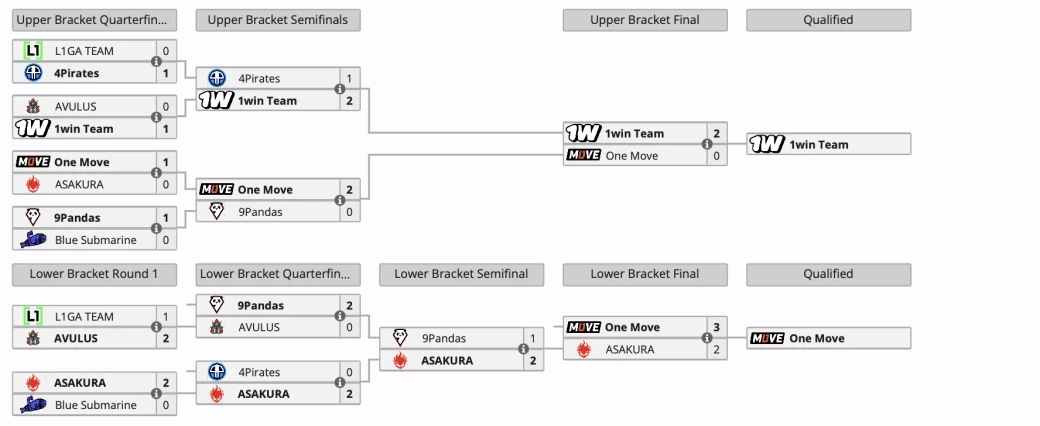 Состав 1win Team забрал первый слот, а One Move достался второй. Отметим, что коллективы сражались и в битве за слот верхней сетки.
