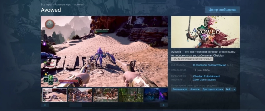 Avowed получила геймплейные ролики с началом прохождения и неплохой рейтинг в Steam