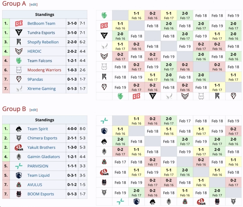 Аутсайдерами групп являются 9Pandas и Xtreme Gaming в группе А и AVULUS и BOOM Esports в группе В. Но у команд еще есть шансы на выход в плей-офф — ведь впереди два игровых дня 18 и 19 февраля.