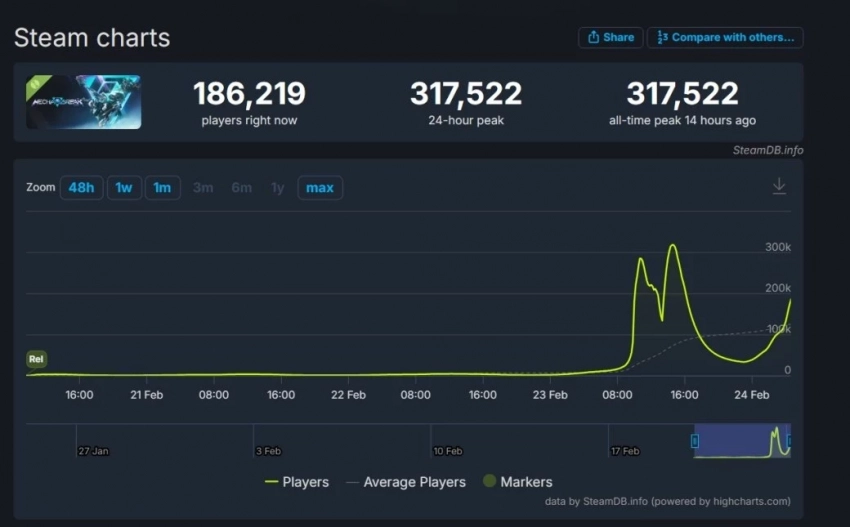 Пиковый онлайн в Steam достиг 317 тыс человек одновременно. Найти страницу демки можно по ссылке.