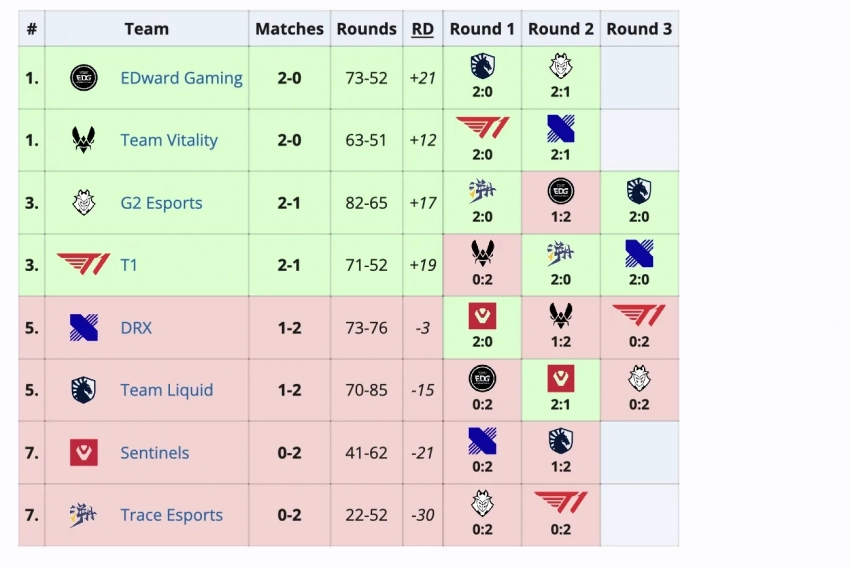 T1 и G2 прошли в плей-офф к EDward Gaming и Team Vitality, в составе которой россиянин Никита «trexx» Чередниченко. Коллективы уходят на паузу до 27 февраля, после чего турнир возобновится.