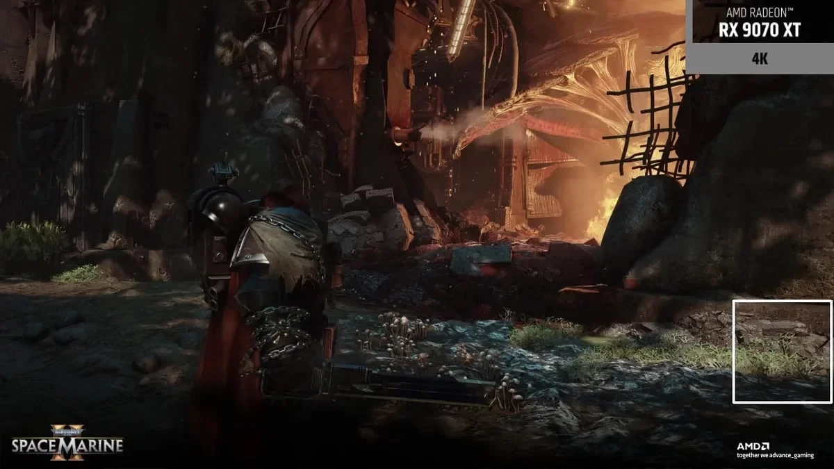 - На примере Warhammer 40K: Space Marine 2 наглядно показали возможности технологии. Если в нативном режиме 4K шутер выдавал 53 FPS, то с FSR 4 и генерацией кадров результаты достигали 182 FPS.