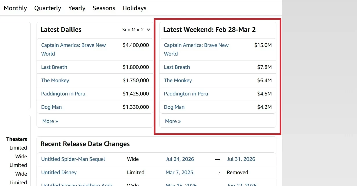 «Капитан Америка: Новый мир» показал себя лучше «Квантомании» на 3-й неделе проката в США