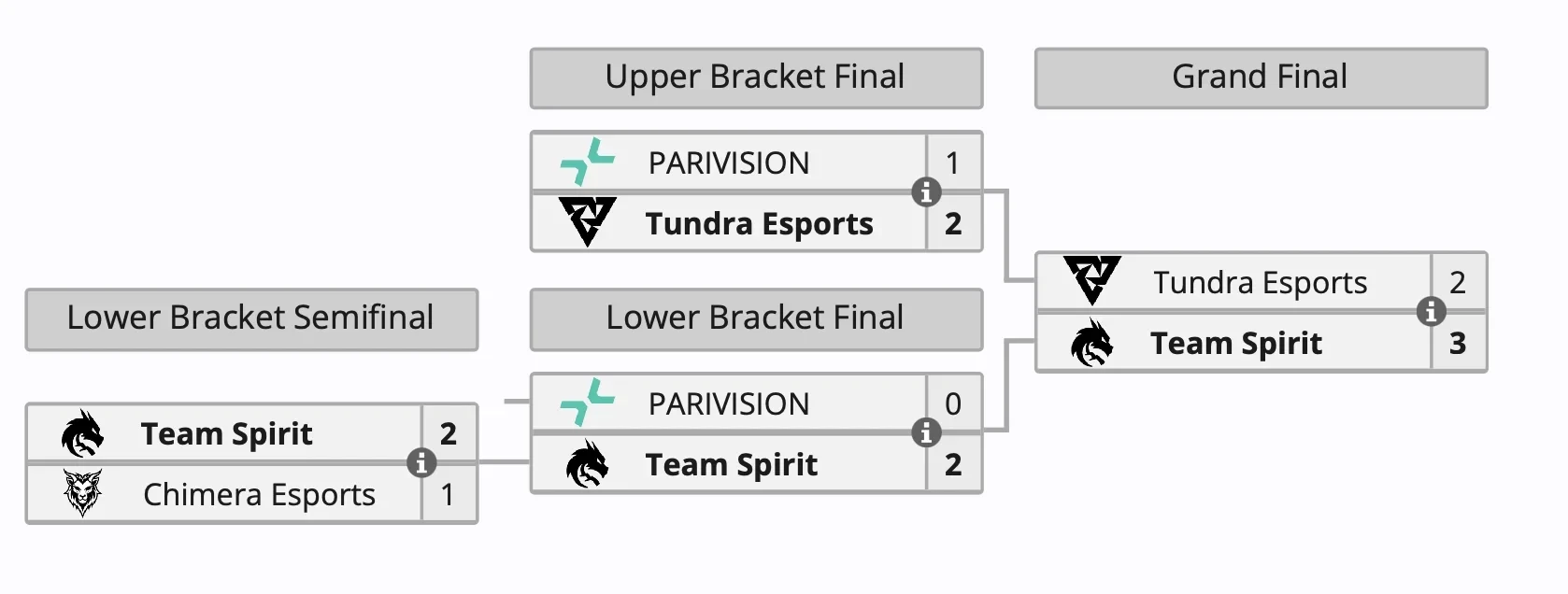 Финальный матч был омрачен DDoS-атакой, направленной против игроков Team Spirit, что привело к прерыванию игры при счете 2:1 в их пользу. После возобновления матча Tundra Esports одержала победу на четвертой карте с разгромным счетом 29:7 по фрагам, однако Team Spirit смогла взять реванш на пятой карте, завершив её со счетом 37:7 по фрагам.