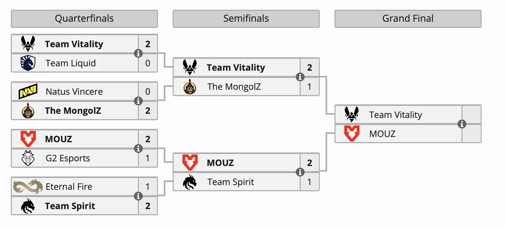 Самое интересное о кино на YouTube канале Игромании!Обложка: hltv.orgОпределились финалисты ESL Pro League Season 21 по Counter-Strike 2. Team Vitality выбила The MongolZ, а MOUZ была сильнее Team Spirit. Оба поединка завершились со счетом 2:1.