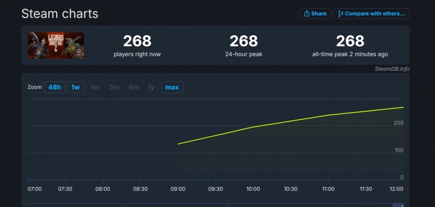 В момент написания новости пиковый онлайн в Steam составил 268 человек и продолжает расти. Приобрести игру «Русы против ящеров 2» можно за 299 рублей со скидкой в 10% — она действует до 3 апреля. Новинка также доступна в VK Play.