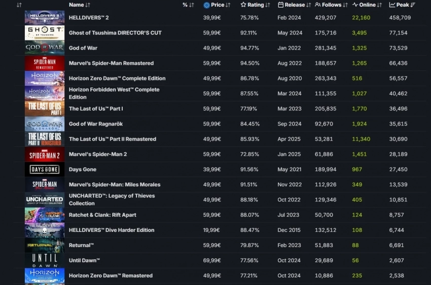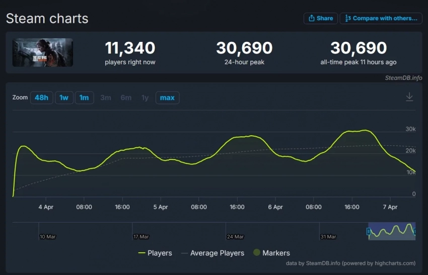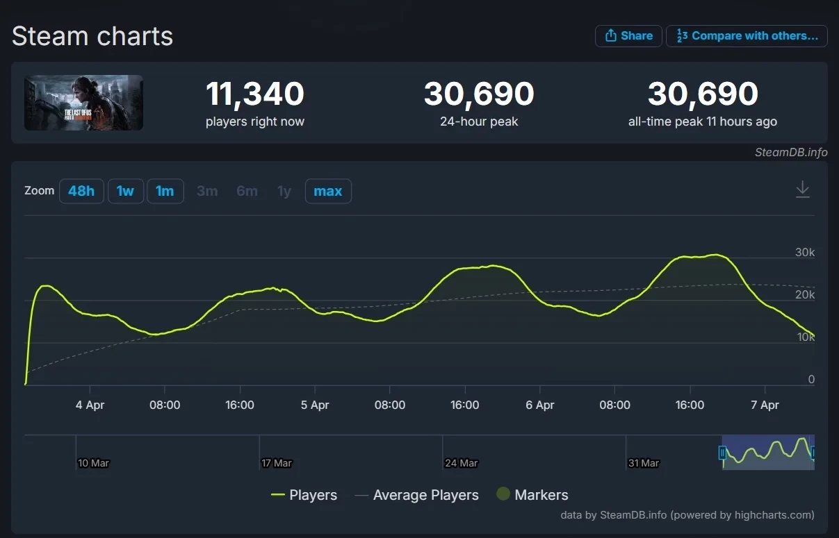 Показатель не дотянул до пика порта The Last of Us Part 1, который в день релиза привлёк 36 496 игроков одновременно.