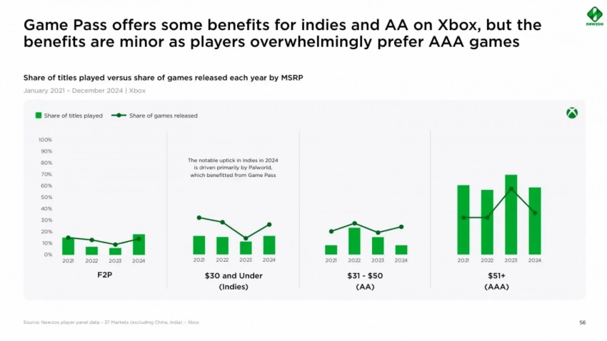 - На Xbox и Game Pass соотношение между разными категориями игр более гармоничное.