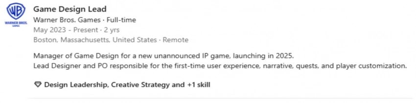Самое интересное о кино на YouTube канале Игромании!Обложка: скриншот Hogwarts LegacyВ сети обратили внимание на портфолио Брэндона Марайя, который трудится старшим геймдизайнером в Warner Bros. Games. Он указал, что занимает свою должность с 2023 года и в настоящий момент работает над некой игрой по новой франшизе. Новинка якобы должна выйти в 2025 году.