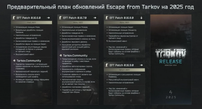 Разработчики заодно рассказали о своих планах выпуска обновлений до конца года. В 2025 году студия намерена выпустить четыре крупных патча, и выйти они должны в мае, июне, июле и августе. Для них готовят изменения локаций, улучшение поведения искусственного интеллекта, оптимизации производительности, правки ошибок и целый ряд новых функций.