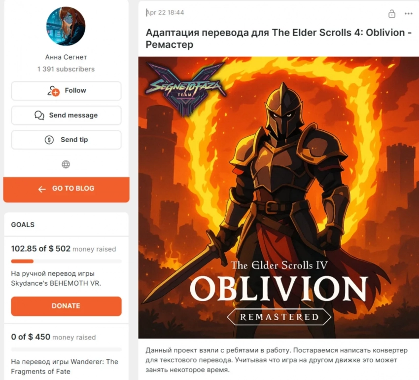 Ещё больше интересных видео на YouTube канале Игромании!Обложка: скриншот The Elder Scrolls 4: Oblivion RemasteredРемастер The Elder Scrolls 4: Oblivion получит неофициальную русскую локализацию — об этом объявила переводчица Анна Сегнет (Segnetofaza) на форуме Zone of Games. Напомним, что Bethesda выпустила ремастер без поддержки русского языка. К слову, машинный перевод уже доступен — его выпустили спустя несколько часов после релиза.
