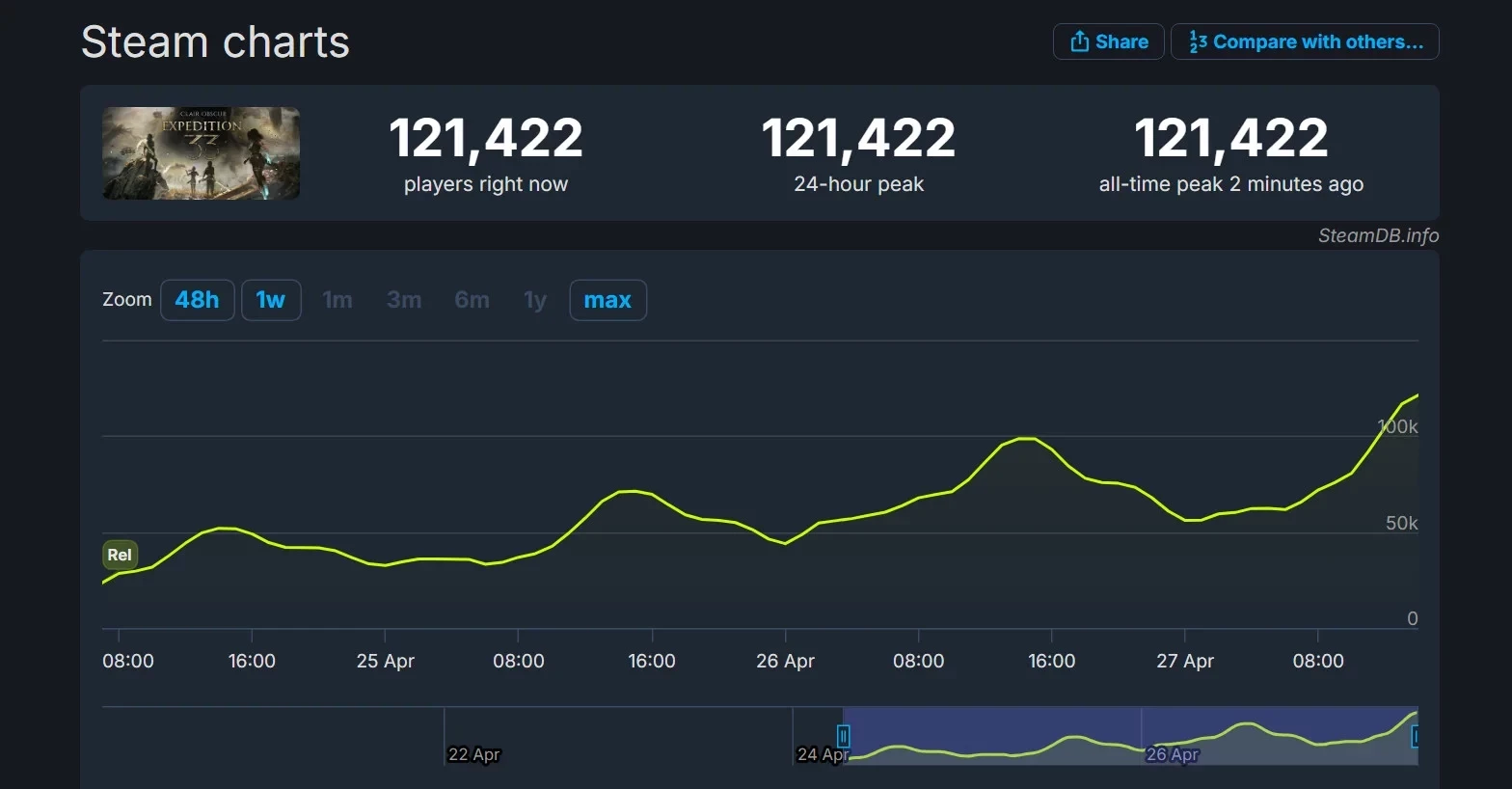 Clair Obscur: Expedition 33 обновила рекорд онлайна в Steam — пик превысил 120 тыс игроков