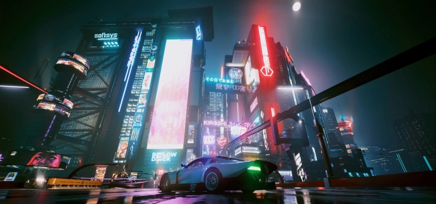 Тем не менее, есть и пара нюансов: например, при движении на высокой скорости возможны артефакты и падения частоты до 20 кадров в секунду. Артефакты также можно увидеть на фоне во время сцены с Джонни Сильверхендом. В статичных же кадрах DLSS обеспечивает качественную реконструкцию изображения, минимизируя мерцание и повышая чёткость.