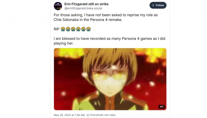 Вслед за Ловенталем о своём неучастии в «ремейке Persona 4» заявила актриса Эрин Фицджеральд.