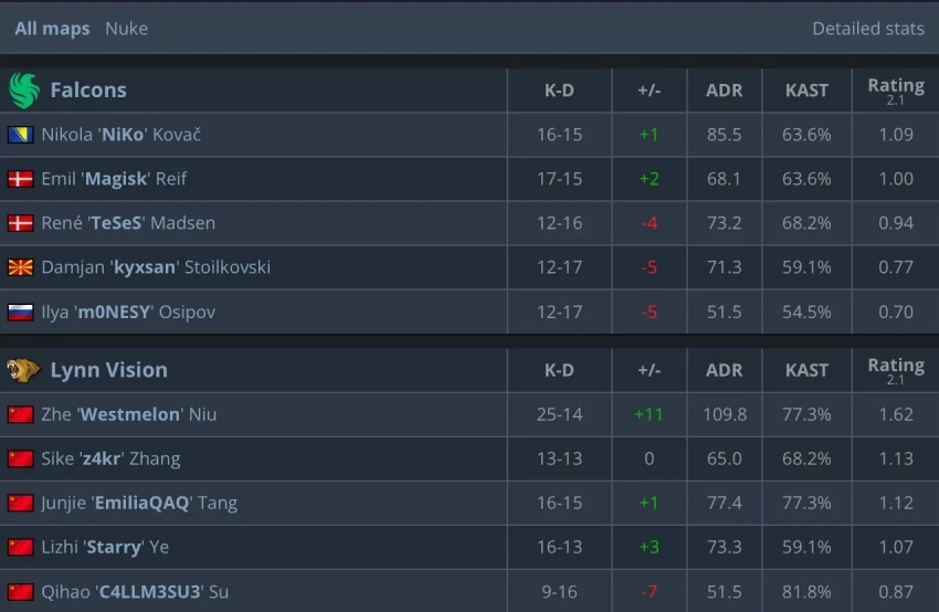 Falcons, занимавшие второе место в списке фаворитов после Vitality, теперь сталкиваются с мрачной перспективой вылета на стадии 2. Кроме поражения от Lynn Vision, команда Дамьяна «kyxsan» Стойковски уступила в матче против B8 со счётом 8:13, что делает их положение на турнире особенно сложным.