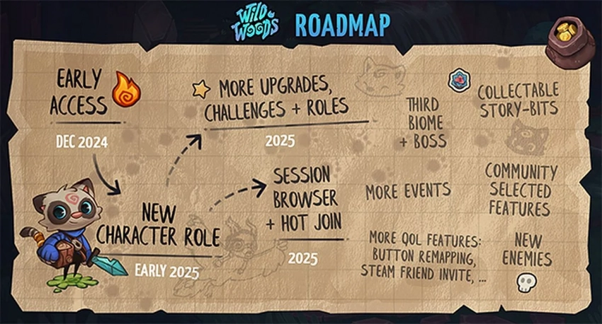 Разработчики обещают в процессе развития добавлять новые биомы, боссов, монстров, роли персонажей и испытания. Появятся также фрагменты сюжета и возможность немедленно присоединиться к игре.