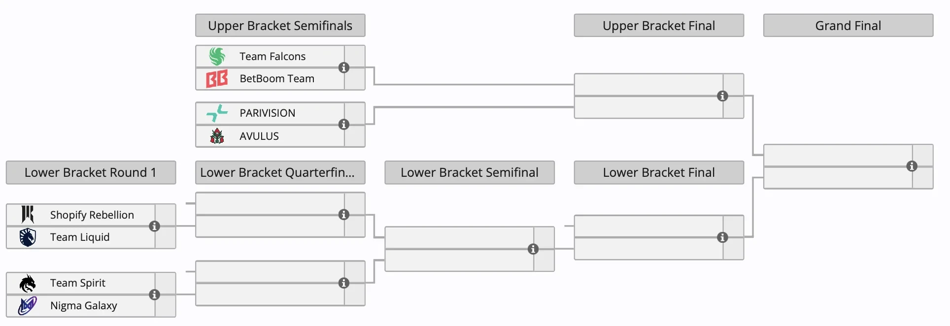 В нижнюю сетку попали Shopify Rebellion и Team Liquid, Team Spirit и Nigma Galaxy. У команд не будет второго шанса — все они играют на выбывание. Свои поединки пары проведут 13 декабря.