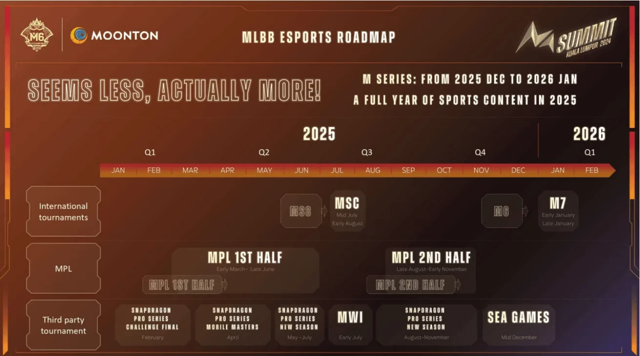 Дополнительно запланированы турниры Snapdragon Pro Series и Mobile Masters в 2025 году. Во время финала чемпионата мира по MLBB, который состоится 15 декабря, будут объявлены страны-хозяйки этих соревнований.