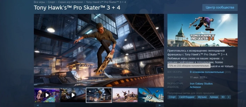 Сборник Tony Hawkʼs Pro Skater 3+4 уже доступен — приём в Steam «в основном положительный»