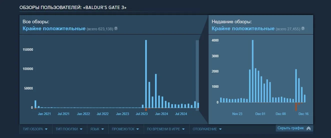 Что касается Baldur’s Gate 3, то с ней всё в порядке: на семь сотен отрицательных отзывов в Steam за последние дни пришлось около пяти тысяч положительных.