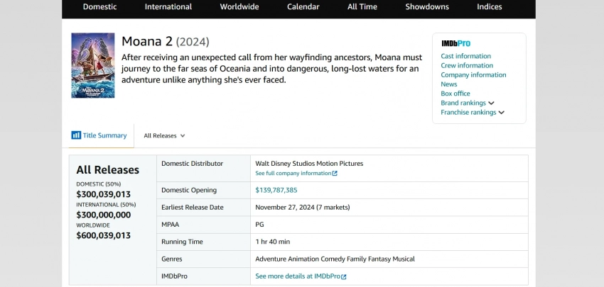 Главные новости » Новости кино » Сиквел «Моаны» встал сразу за второй «Дюной» в топе самых кассовых фильмов 2024 года