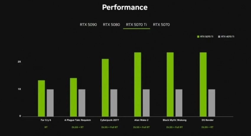 Серия RTX 50 будет использовать DLSS 4 с технологией многокадровой генерации, которая поможет росту производительности (как и увеличенная пропускная способность памяти). К примеру, RTX 5070 должна быть равна по мощности RTX 4090, тогда как остальные новые карты будут и того мощнее.