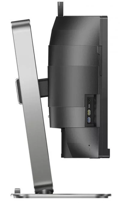 В оснащение монитора также вошли пара динамиков мощностью по 5 Вт каждый, 2,5-гигабитный разъём LAN, KVM-переключатель с удобной функцией переключения через клавишу Ctrl на клавиатуре, два порта HDMI 2.0, один DisplayPort 1.4, два восходящих USB 3.2 Type-C с альтернативным режимом DisplayPort и зарядки мощностью до 100 Вт, два нисходящих USB-A (один с функцией зарядки B.C 1.2) и ещё один USB Type-C с функцией зарядки мощностью 15 Вт. Кроме того, монитор получил комбинированный 3,5-мм аудиовыход и эргономичную подставку.