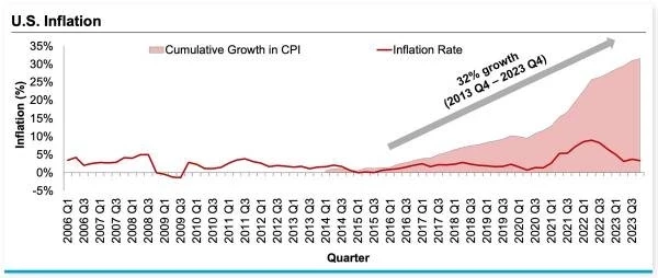 Инфляция достигла пика в июне 2022 года, когда индекс потребительских цен вырос на 9.1% в годовом исчислении — самый быстрый рост за 41 год — как раз в то время, когда значительная часть поколения Z начала выходить на рынок труда. Инфляция остается высокой, несмотря на кампанию по ужесточению денежно-кредитной политики Федеральной резервной системы США, при этом потребительские цены без учета продовольствия и энергии росли на 4.5% в годовом исчислении в первом квартале 2024 года по сравнению с 3.3% в предыдущем квартале.