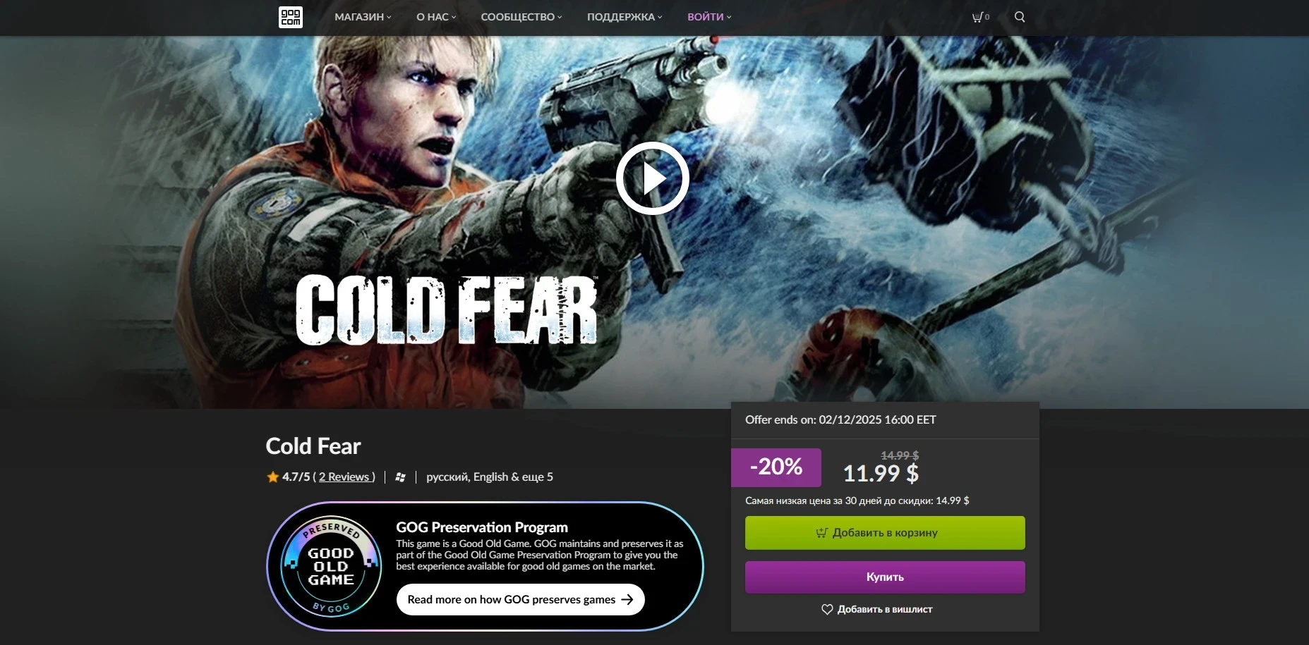 Убранный из продажи в Steam хоррор Cold Fear попал в программу сохранения игр GOG