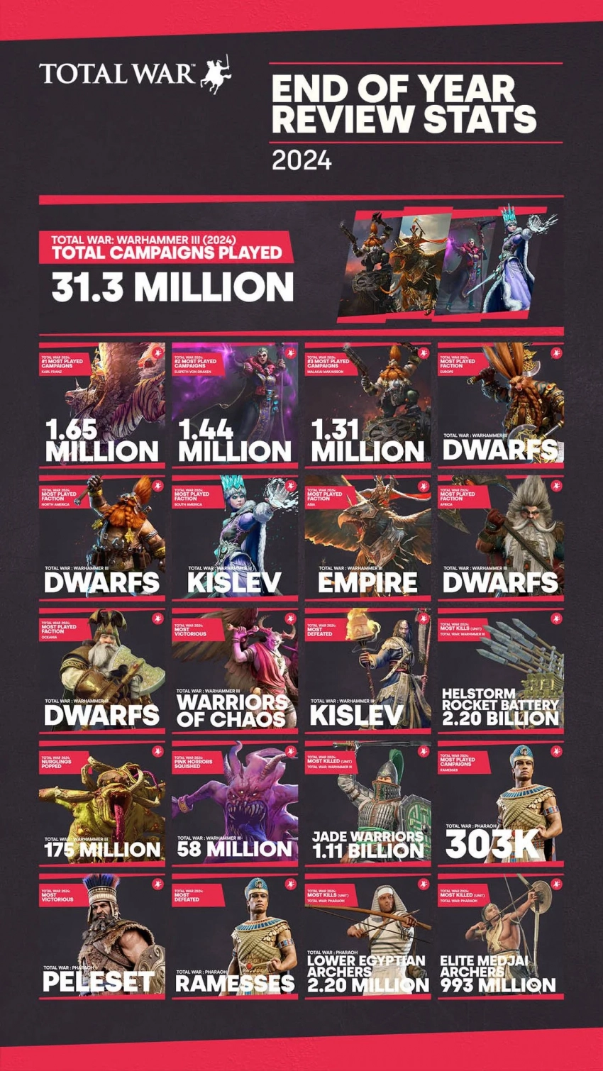 Главные новости » Все об играх » Авторы серии Total War опубликовали статистику за 2024 год