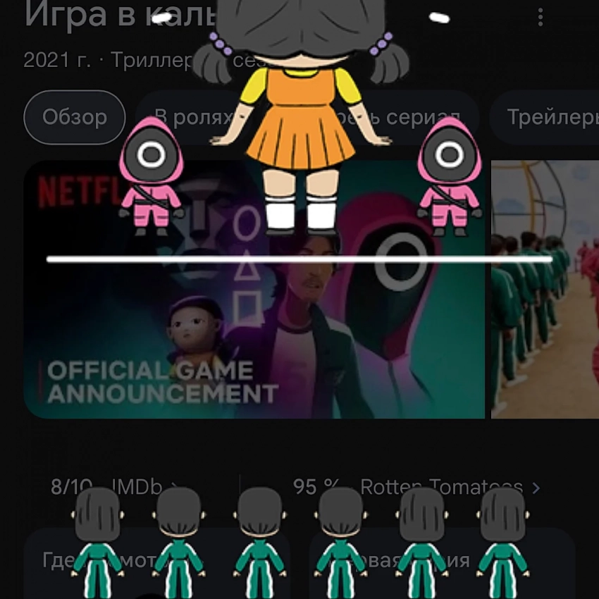 Самое интересное о кино на YouTube канале Игромании!Обложка: скрин со смартфона автораNetflix активно продвигает второй сезон «Игры в кальмара», который выйдет 26 декабря. В сотрудничестве с Google поклонникам дали возможность сыграть в мини-игру «Красный свет, зелёный свет». Надо просто ввести название сериала в поиске.