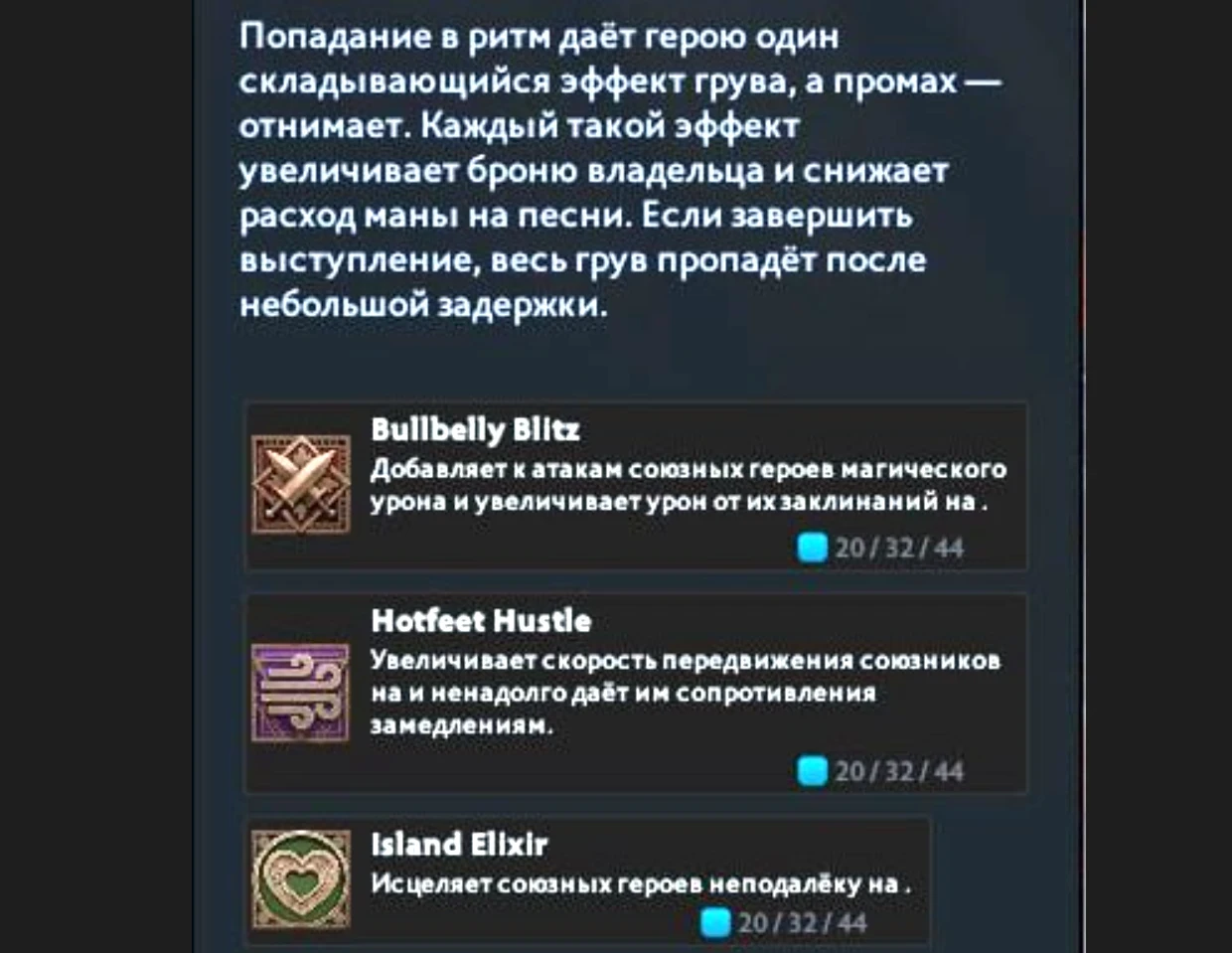 • Исправлен баг с Largo и Aghanim’s Scepter, из-за которого одновременно прожатые мелодии не срабатывали, но срабатывали если нажимать попеременно;