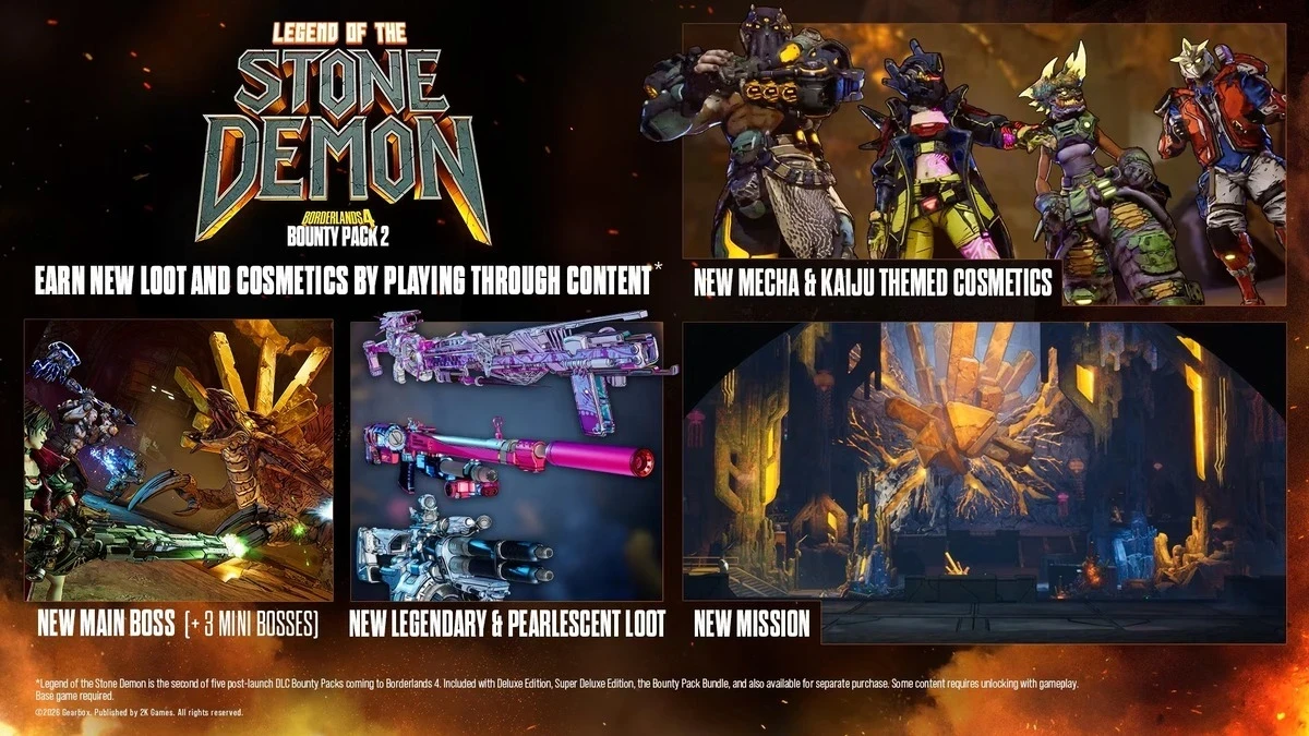 Скриншот из игры Borderlands 4/Источник: Gearbox SoftwareДо релиза нового дополнения для Borderlands 4 остаётся меньше недели — DLC Legend of the Stone Demon выйдет 26 февраля вместе с крупным обновлением. Разработчики из Gearbox Software раскрыли детали второго набора Bounty Pack, который должен подготовить игроков к более крупному сюжетному расширению «Бешеная Элли и Хранилище Проклятых», запланированному на март.
