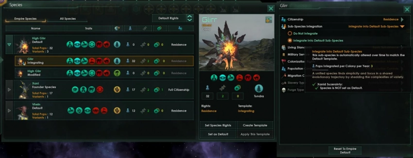 • группировка населения на основе вида, социального слоя и этики — это сократит количество расчетов в игре, а также повлияет на такие системы, как рост населения, миграция или управление рабочими местами;