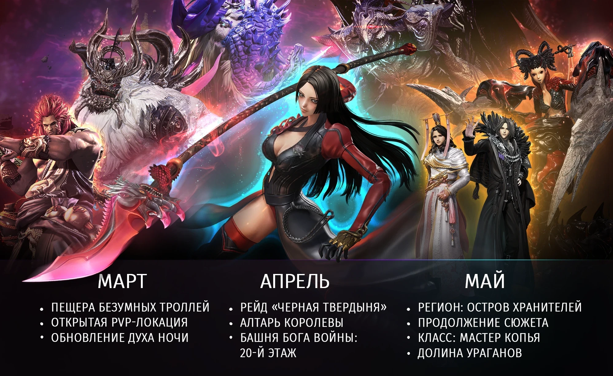 Майское обновление откроет регион Остров Хранителей, где продолжится сюжетная линия игры. Кроме того, игроков ждет новый класс — Мастер копья.
