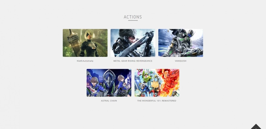 Текущее портфолио с экшенами (за рамками серии Bayonetta) на сайте PlatinumGames