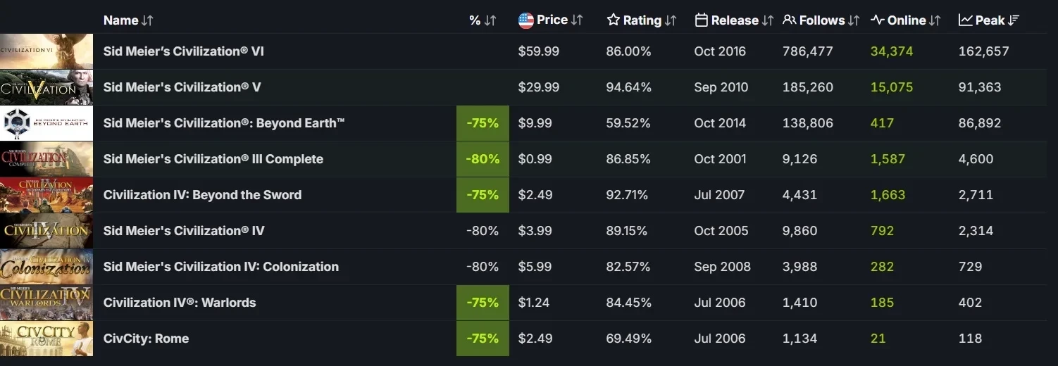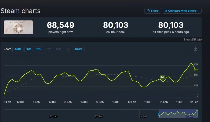 Пиковый онлайн Sid Meierʼs Civilization 7 в Steam превысил 80 тыс игроков