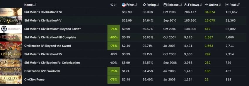 Главные новости » Все об играх » Пиковый онлайн Sid Meierʼs Civilization 7 в Steam превысил 80 тыс игроков