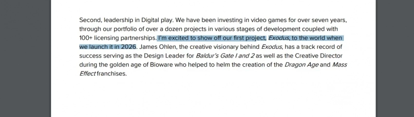 Самое интересное о кино на YouTube канале Игромании!Обложка: скриншот игры ExodusРелиз ролевого экшена Exodus (2026) ожидается в 2026 году. Об этом сообщили в Hasbro, материнской компании Archetype Entertainment.